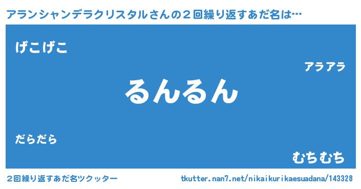 | 男性向けラノベタイトル風あだ名 | 『アランシャンデラクリスタルスレイヤー』 |