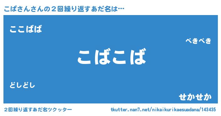 | 欧米人風あだ名 | 『マイケルこばさん』『ダニエルこばさん』 |
