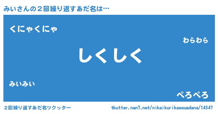 | 意味不明あだ名 | 『住所不定無職みい(39歳)』『永久保存みい』 |