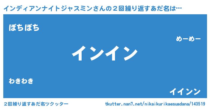 | 男性向けラノベタイトル風あだ名 | 『インディアンナイトジャスミンアートオンライン』 |