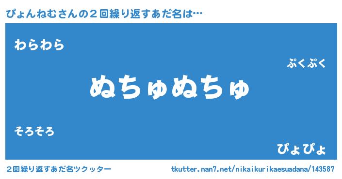 | 意味不明あだ名 | 『とにかく怪しいぴょんねむ』 |