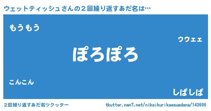 | 男性向けラノベタイトル風あだ名 | 『ノーゲーム・ノーウェットティッシュ』 |