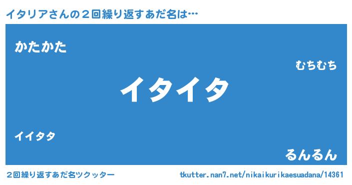 | ヘコむあだ名 | 『イタもー』『イタリア(笑)』『牛乳』 |