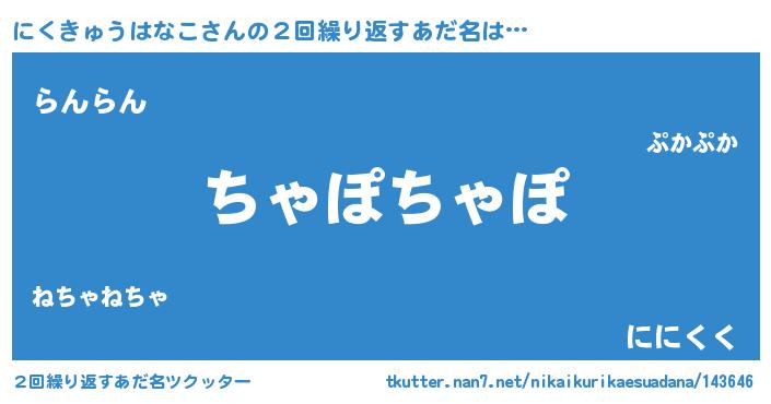 | ヒーロー風カッコイイあだ名 | 『ウルトラにくきゅうはなこマン』 |