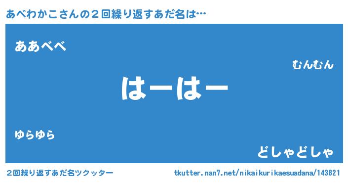 | 欧米人風あだ名 | 『アンジェラ・あべわかこ』 |