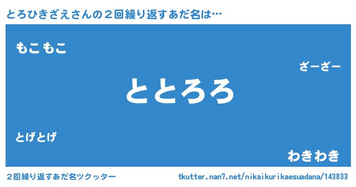 | 意味不明あだ名 | 『とろひきざえフォーエバー』 |