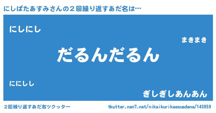 | 欧米人風あだ名 | 『にしばたあすみ・ステッグマイヤー』 |