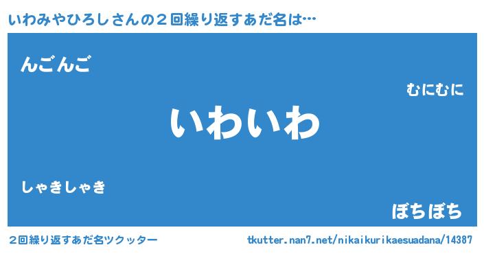 | ヘコむあだ名 | 『いわふぇ~』『いわみやひろし(笑)』 |