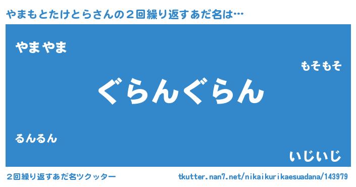 | 意味不明あだ名 | 『永久保存やまもとたけとら』 |