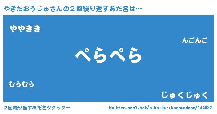 | 女子向けラノベタイトル風あだ名 | 『やきたおうじゅ恋絵巻』 |