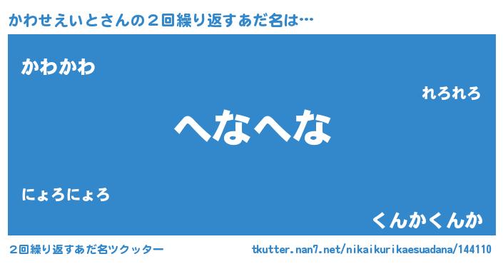 | ヘコむあだ名 | 『かわっふぃ~』『かわせえいと(遠い目)』 |