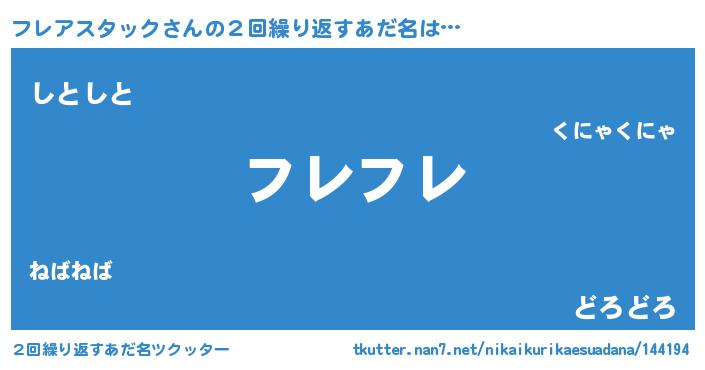 | 恥ずかしいあだ名 | 『プリティーフレアスタック』『フレちん』 |