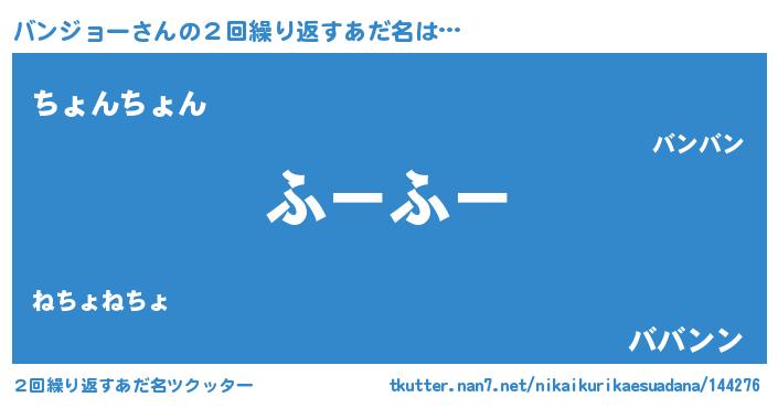 | 女子向けラノベタイトル風あだ名 | 『バンジョー夫妻のなれそめ』 |