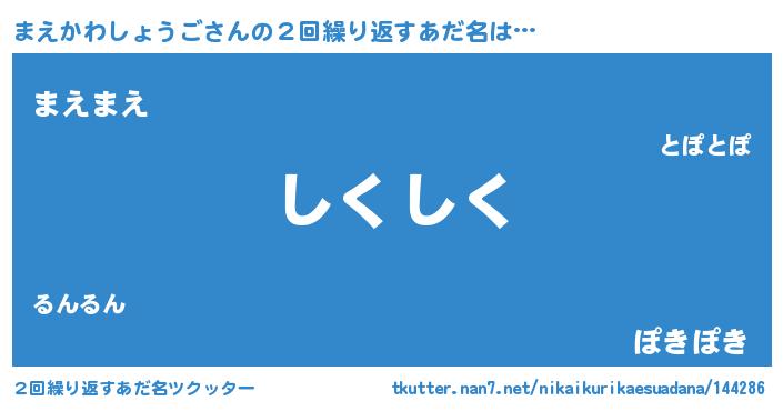 | ヘコむあだ名 | 『まえにー』『まえかわしょうご(遠い目)』 |
