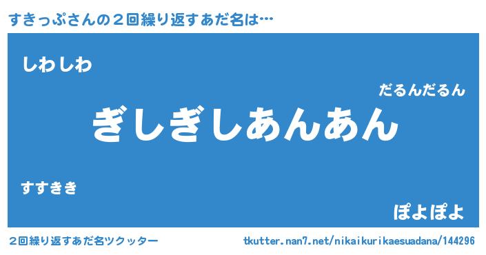 | ヘコむあだ名 | 『すきっぷ(笑)』『なまこ酢』 |