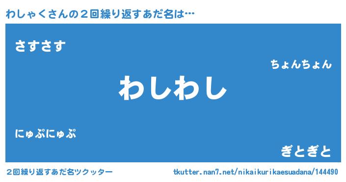 | 意味不明あだ名 | 『ペロリンわしゃく』『永久保存わしゃく』 |