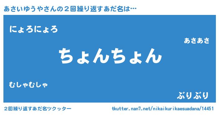 | 意味不明あだ名 | 『とにかく怪しいあさいゆうや』 |