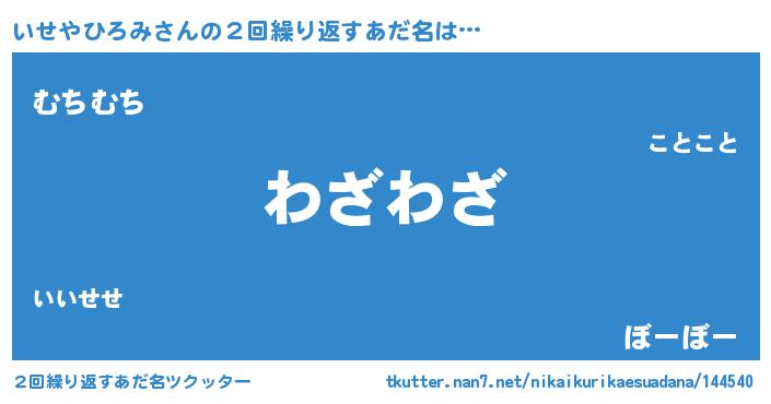 | ヒーロー風カッコイイあだ名 | 『最強戦士イセヤヒロミ』『炎刃騎士イセ』 |