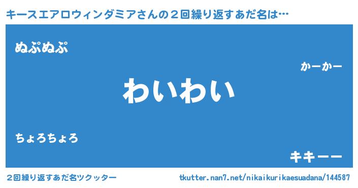 | 女子向けラノベタイトル風あだ名 | 『キースエアロウィンダミアの玉の輿計画!』 |