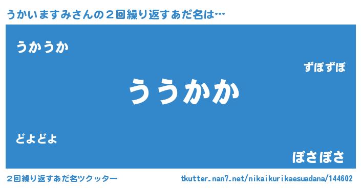 | 恥ずかしいあだ名 | 『うかっちょ』『プリティーうかいますみ』 |