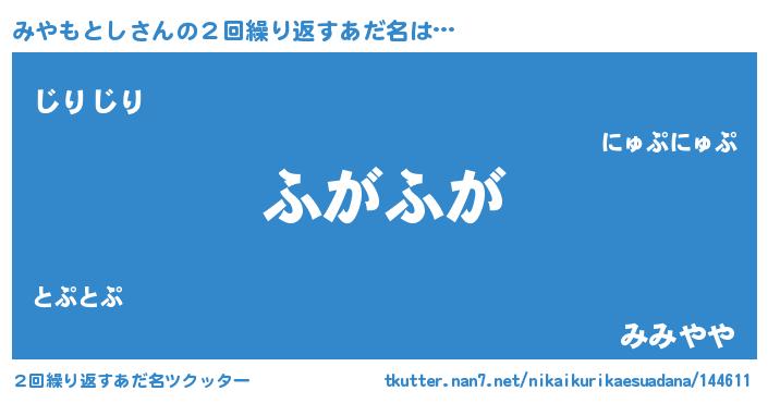 | ピコ太郎風あだ名 | 『ミミ太郎』『ピミ六郎』『ミヤ次郎』 |