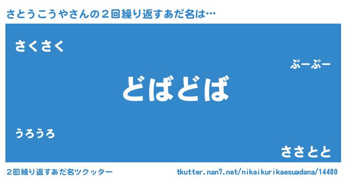 | 意味不明あだ名 | 『住所不定無職さとうこうや(13歳)』 |