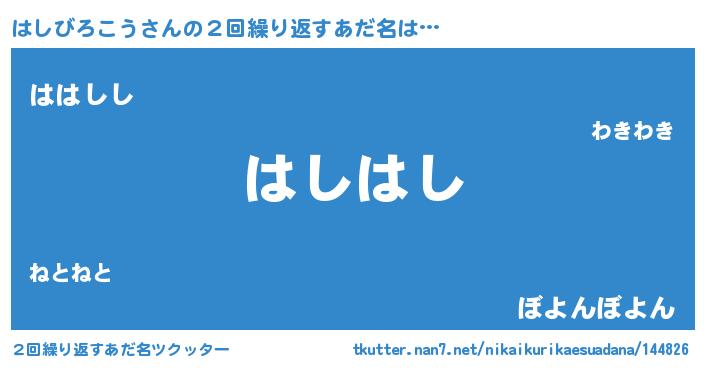 | ヘコむあだ名 | 『はしにゅー』『つくし』『はしお』 |