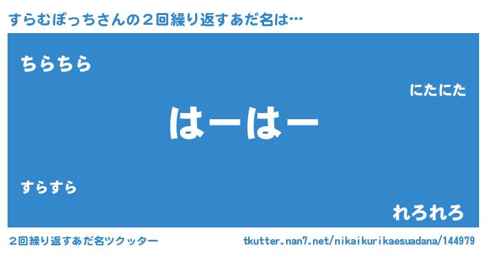 | 欧米人風あだ名 | 『アンジェラ・すらむぼっち』 |