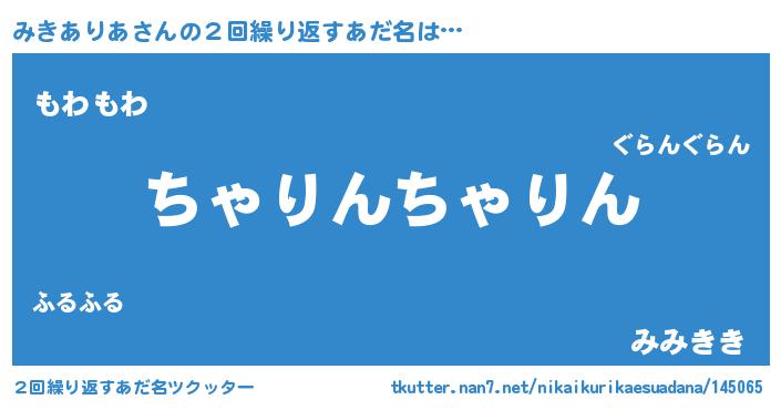 | 意味不明あだ名 | 『自称みきありあ』『永久保存みきありあ』 |