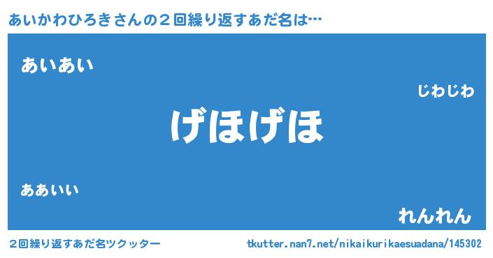 | ヘコむあだ名 | 『あいかわひろき(苦笑)』『あいにゅー』 |