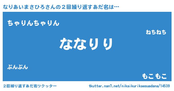 | 意味不明あだ名 | 『なりあいまさひろフォーエバー』 |