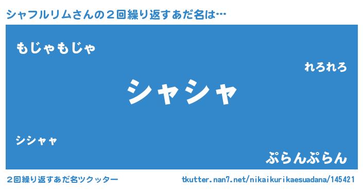 | 男性向けラノベタイトル風あだ名 | 『シャフルリムの憂鬱』 |