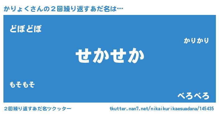 | 意味不明あだ名 | 『住所不定無職かりょく(6歳)』 |