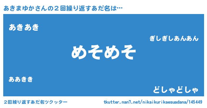 | 意味不明あだ名 | 『自称あきまゆか』『ペロリンあきまゆか』 |