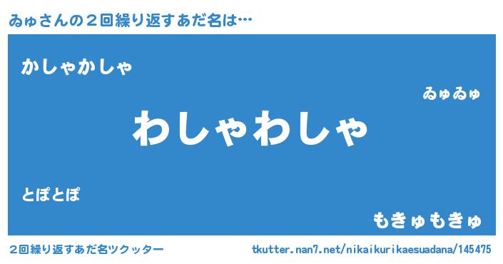 | 男性向けラノベタイトル風あだ名 | 『ゐゅ~年齢イコール彼女いない歴の魔法使い~』 |