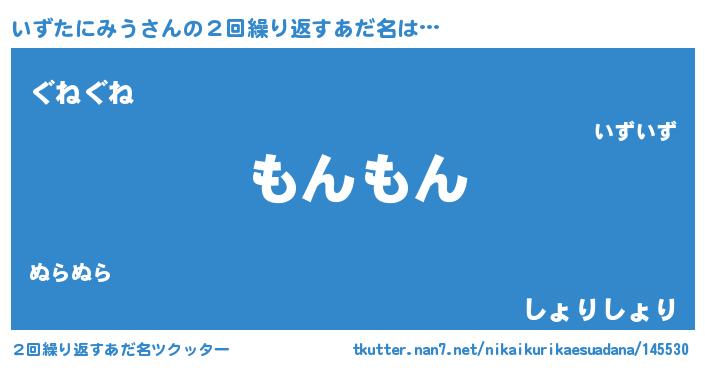 | 男性向けラノベタイトル風あだ名 | 『Re:いずたにみうから始める異世界生活』 |