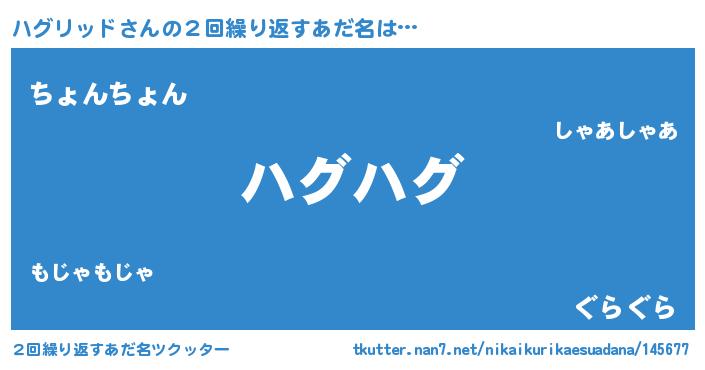 | ヘコむあだ名 | 『ハグもー』『ハグリッド(苦笑)』 |