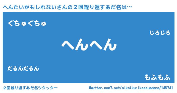 | 男性向けラノベタイトル風あだ名 | 『へんたいかもしれないの憂鬱』 |