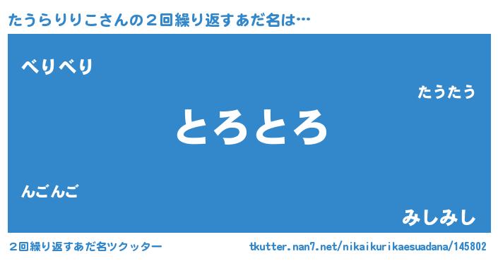 | 料理風あだ名 | 『たうらりりこの炊き込みご飯』 |