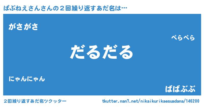 | 意味不明あだ名 | 『永久保存ばぶねえさん』 |