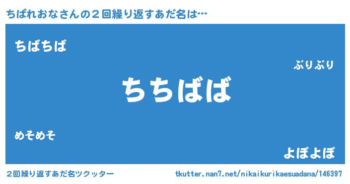 | 男性向けラノベタイトル風あだ名 | 『ちばれおなに滅ぼされるだけの簡単なお仕事です』 |
