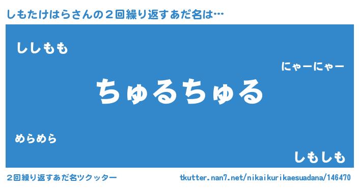 | 意味不明あだ名 | 『しもたけはらフォーエバー』 |
