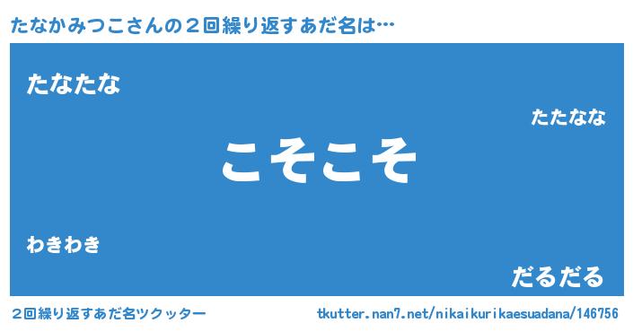 | 意味不明あだ名 | 『永久保存たなかみつこ』 |