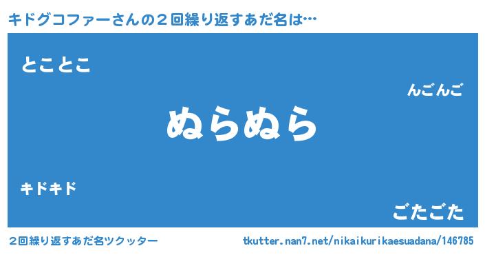 | 男性向けラノベタイトル風あだ名 | 『キドグコファーの嫁は女の子じゃないと思った?』 |