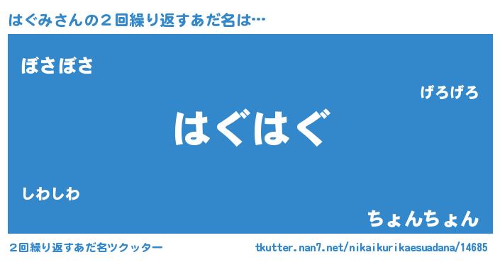 | ヘコむあだ名 | 『はぐにゅー』『はぐみ(爆)』 |