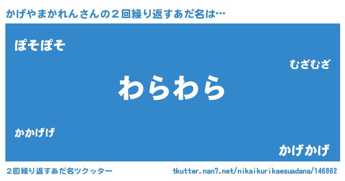 | ヘコむあだ名 | 『かげもー』『豆乳』『かげを』 |