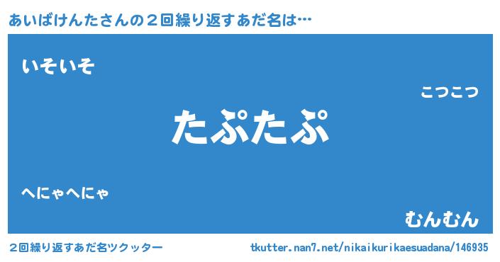 | 欧米人風あだ名 | 『あいばけんた・ステッグマイヤー』 |