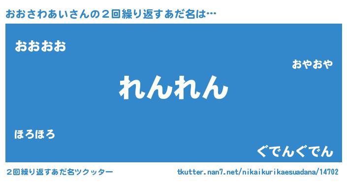 | 男性向けラノベタイトル風あだ名 | 『転生したらおおさわあいだった件』 |