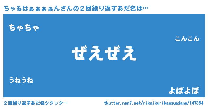 | 男性向けラノベタイトル風あだ名 | 『この素晴らしい世界にちゃるはぁぁぁぁんを!』 |