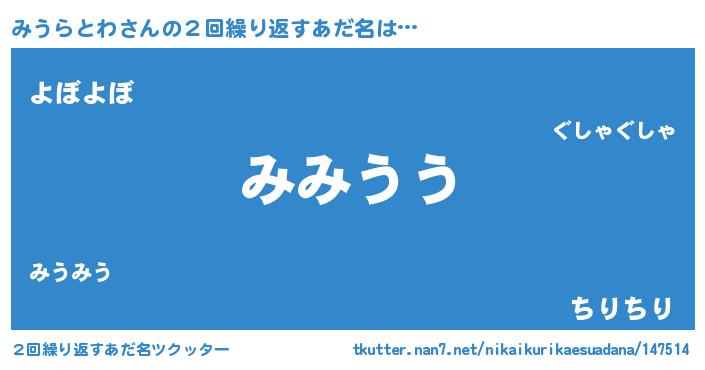 | ファンタジー風あだ名 | 『エターナルミウラトワー』『ミウフェル』 |